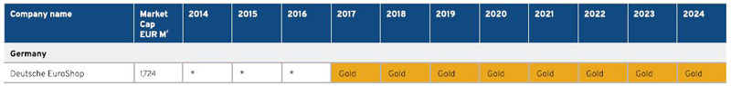 Deutsche EuroShop has been recognised with this year's “EPRA Sustainability Best Practices Recommendations (sBPR) Gold Award” and “EPRA Best Practices Recommendations (BPR) Gold Award” in the context of the annual EPRA conference in Berlin. In both categories it is the eigth Gold Award in a row since 2017.