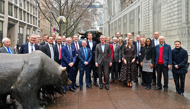 Eine Besonderheit dieses Tages machte den Besuch zusätzlich symbolträchtig: Die Deutsche EuroShop war mit ihrem gesamten Unternehmen im Handelssaal vertreten – sieben Mitarbeiterinnen und Mitarbeiter sowie der alleinige Vorstand. Damit stand buchstäblich der komplette Konzern auf dem Parkett. Ein seltener Moment, der verdeutlicht, dass unternehmerische Stärke nicht an Mitarbeiterzahlen gemessen wird, sondern an Haltung, Kontinuität und Verantwortungsbewusstsein.